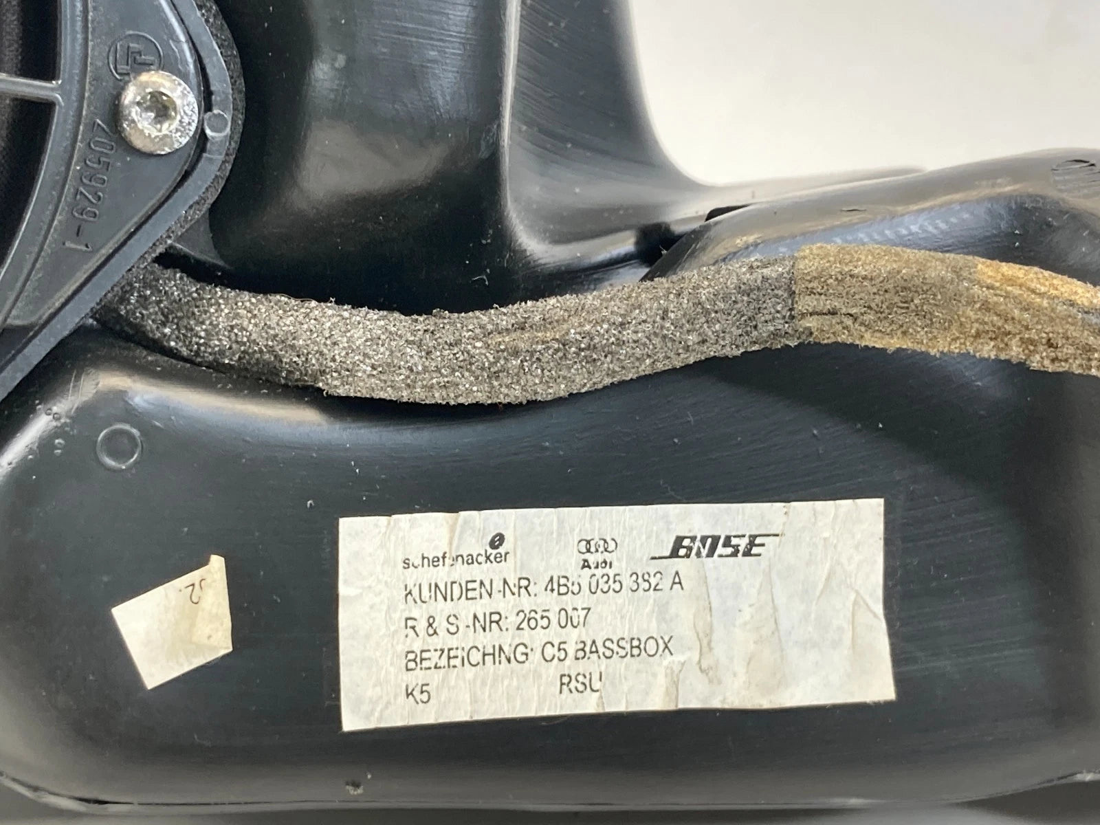 2000-2004 AUDI A6 QUATTRO REAR TRUNK SUBWOOFER SPEAKER ASSEMBLY 4B5035382A OEM