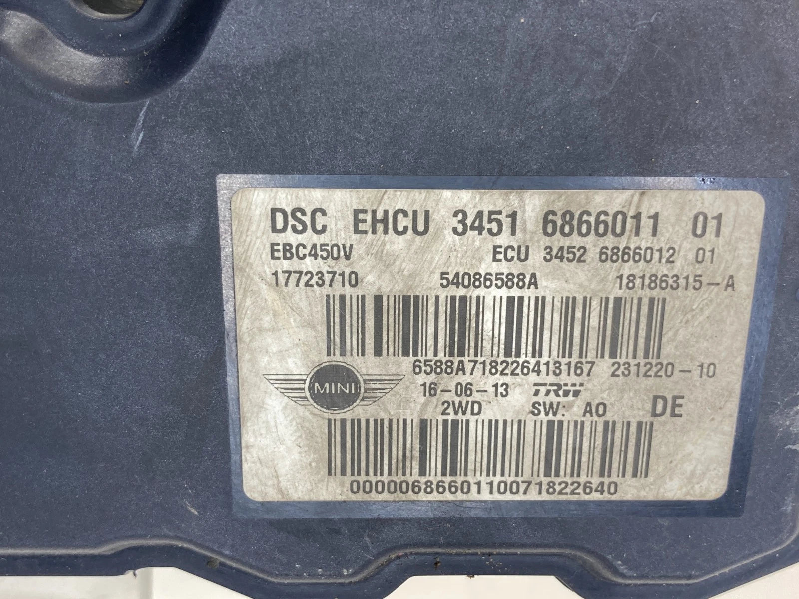 2012 2013 Mini Cooper 1.6L FWD ABS Anti Lock Brake Pump Module 3451-6866011-01