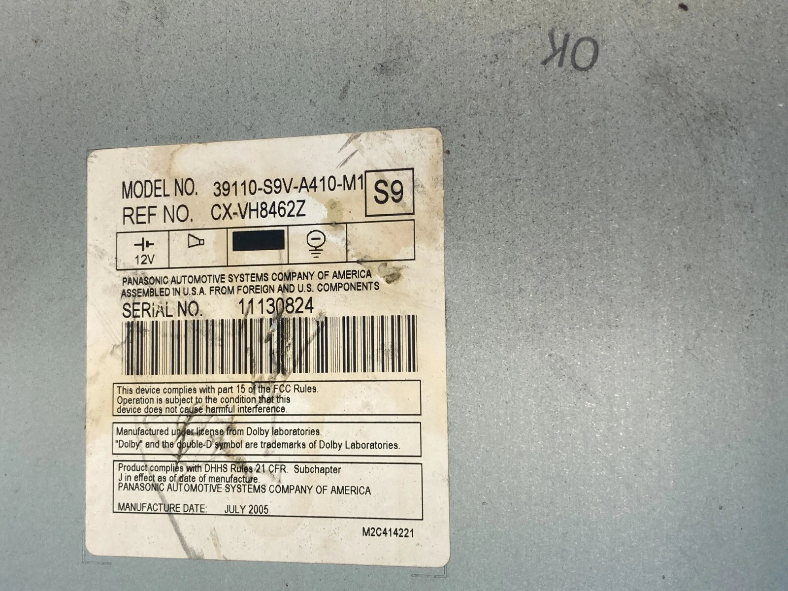Part Number 39110-S9V-A410-M1