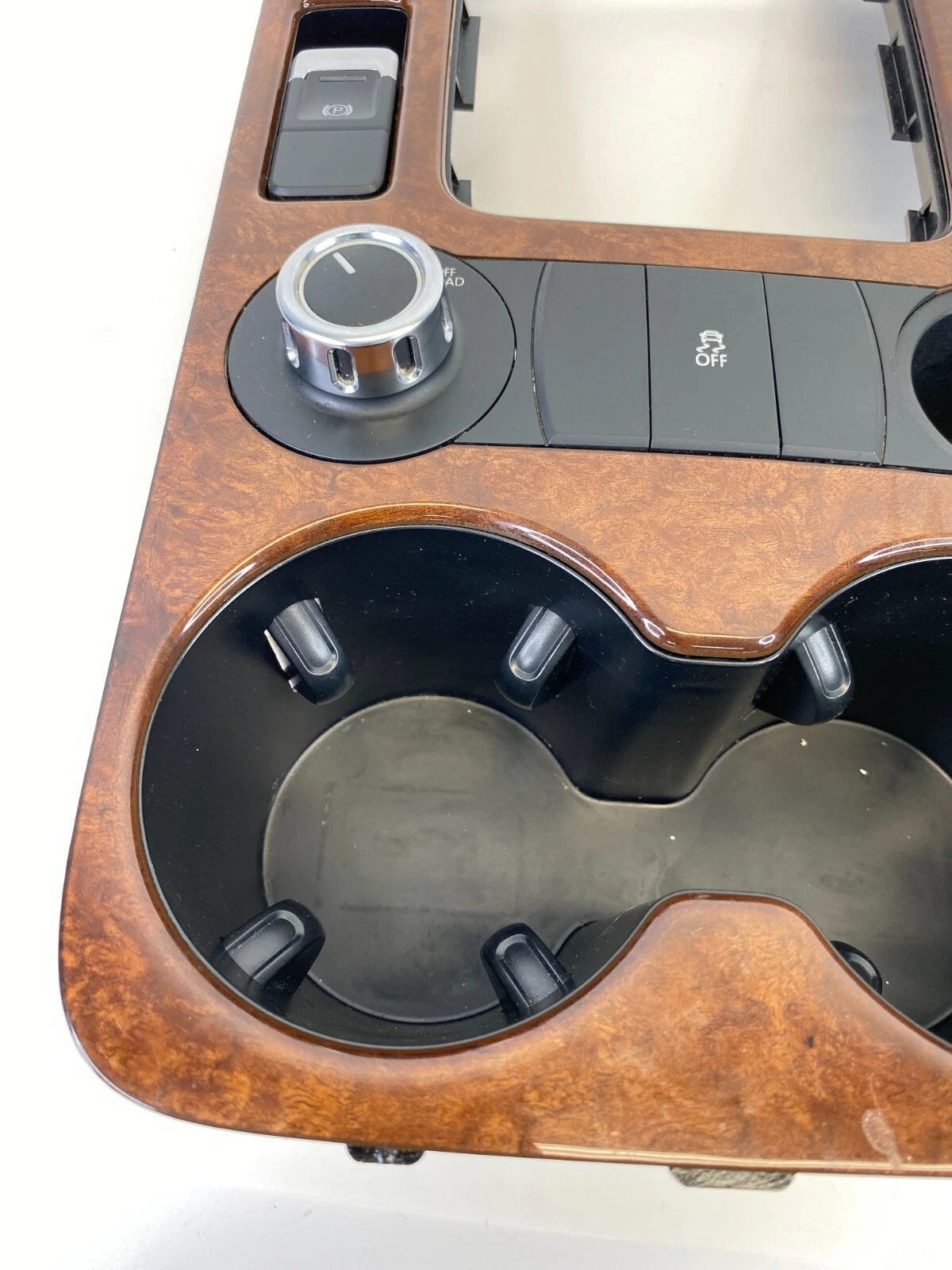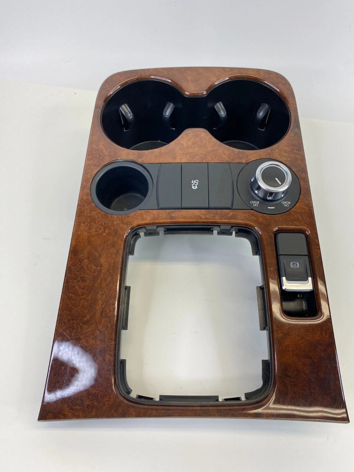 11-14 VW TOUAREG CENTER CONSOLE SHIFT PLATE TRIM W/ TRACTION SWITCH & CUP HOLDER