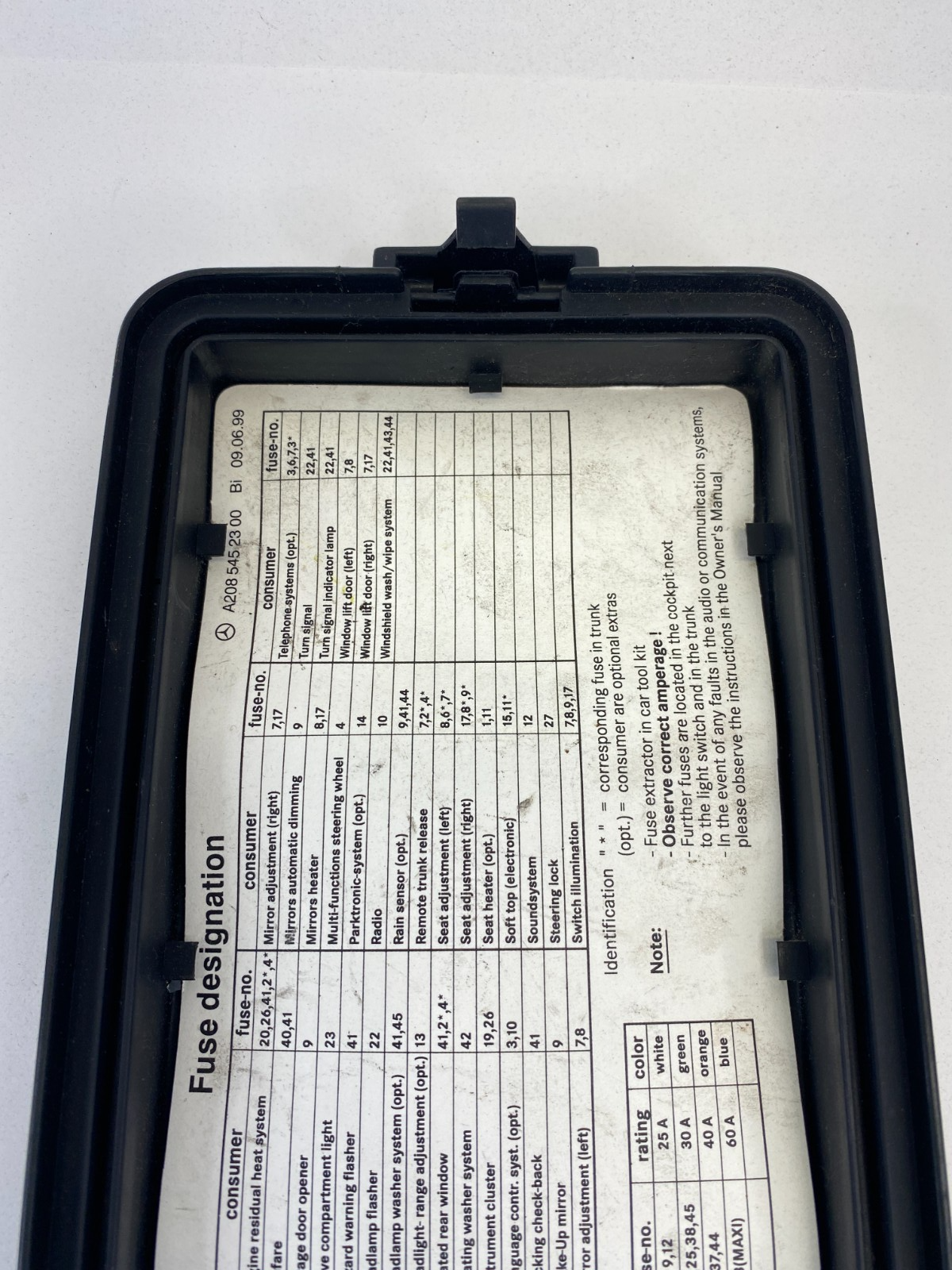 1999-2003 Mercedes-Benz CLK430 Under Hood Fuse Box Cover Lid Cap