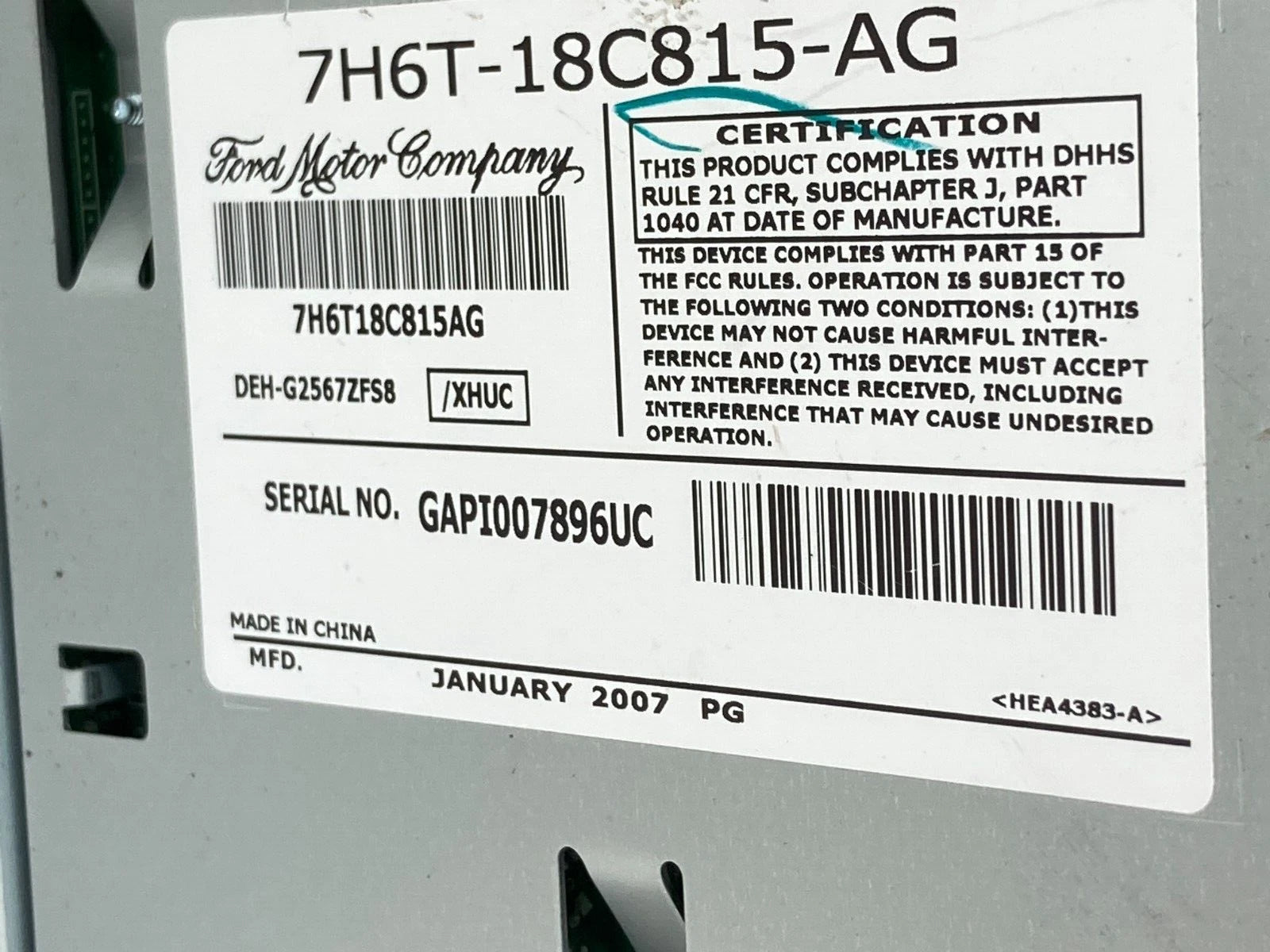 Part Number 7H6T-18C815-AG